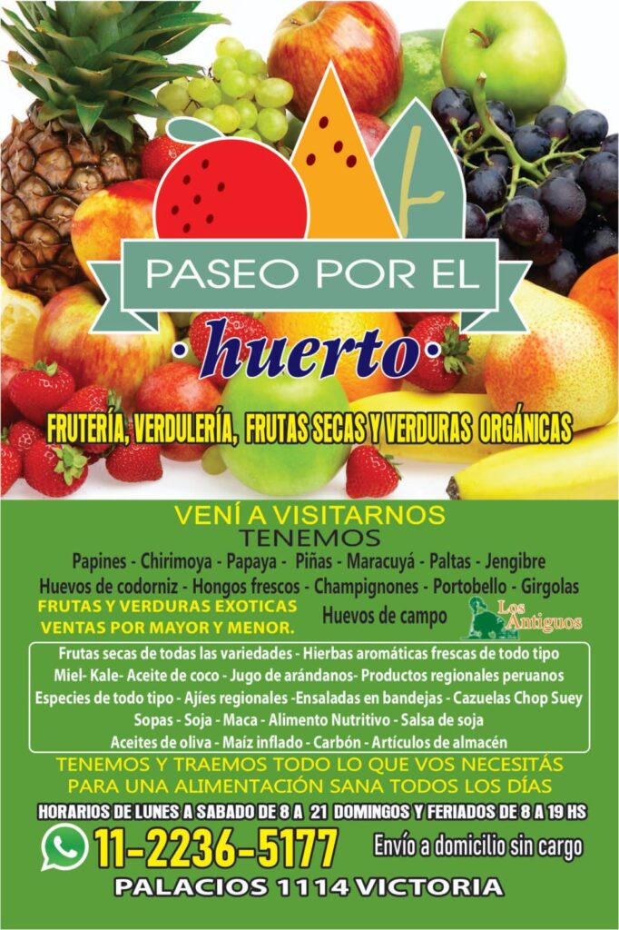 Paseo por el huerto es una frutería verdulería ubicada en en corazón de Victoria. Nos esforzamos para que todos nuestros productos estén siempre con la mejor calidad. Vení a Visitarnos!